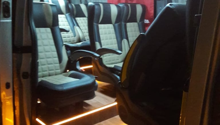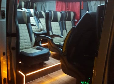 Oferecemos vans, micro-ônibus e ônibus executivos para suas viagens em grupo, festas e passeios turísticos.